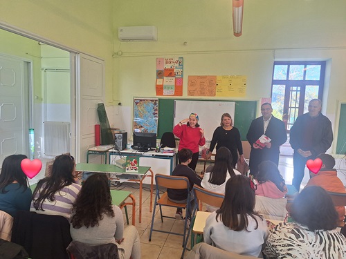 Στο σχολείο, συνομίλησαν και αντάλαξαν ευχές και δώρα με τα παιδιά και τους εκπαιδευτικούς σε ένα όμορφο εορταστικό περιβάλλον, με Χριστουγεννιάτικη διακόσμηση και διάθεση.