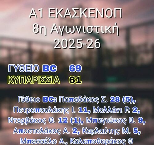 Τη δεύτερη νίκη πήρε η ομάδα μας έπειτα από την πλήρη της συγκέντρωση σε όλο το παιχνίδι και με τις καλές εμφανίσεις όλων των παιχτών οδεύουν στο επόμενο παιχνίδι ενάντια στην ομάδα του Σπαρτιατικού στο Κλειστό Γυμναστήριο Σπάρτης.