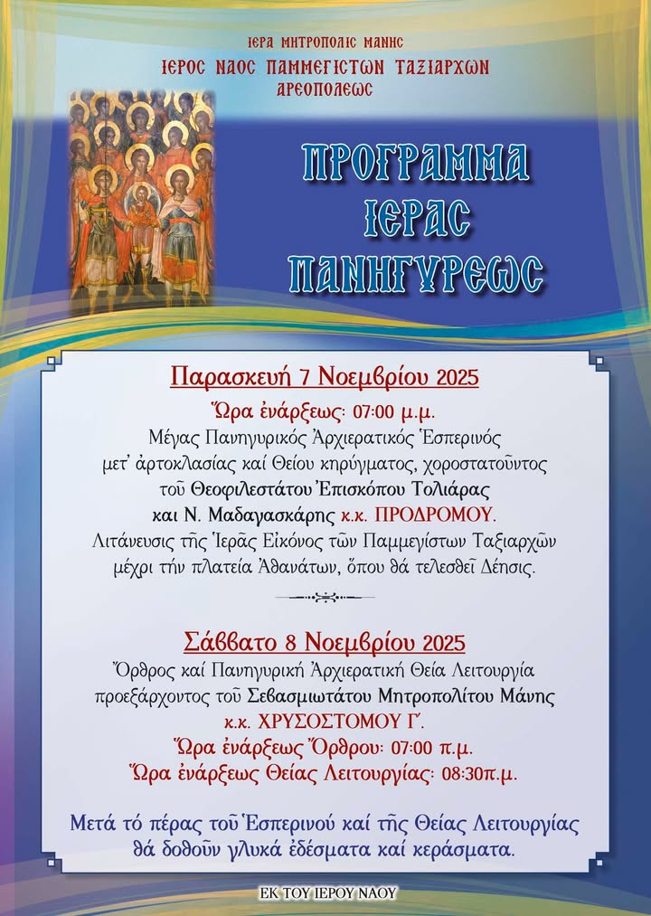 Το διήμερο 7 και 8 Νοεμβρίου πανηγυρίζει ο ιστορικός Ναός των Ταξιαρχών Αρεόπολης | Αναλυτικά το πρόγραμμα