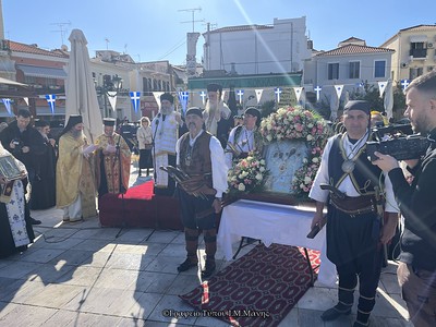 Μετὰ τὸ πέρας τῆς Θ. Λειτουργίας λιτανεύθηκε ἡ Ἱερὰ Εἰκόνα, ἒγινε Δέηση στὴ πλατεῖα τοῦ Γυθείου, ἐκφωνήθηκε λόγος τοῦ Σεβ. Μητροπολίτου Μάνης κ. Χρυσοστόμου Γ’ καὶ τελέστηκε Τρισάγιο ἀπὸ τὸν Σεβ. Ἄρτης κ. Καλλίνικο γιὰ τοὺς πεσόντες Λάκωνες ἀεροπόρους.