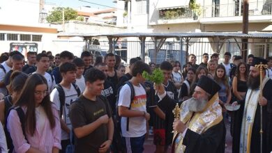 Ἁγιασμός στό Λύκειο Γυθείου από τον Μητροπολίτη Μάνης